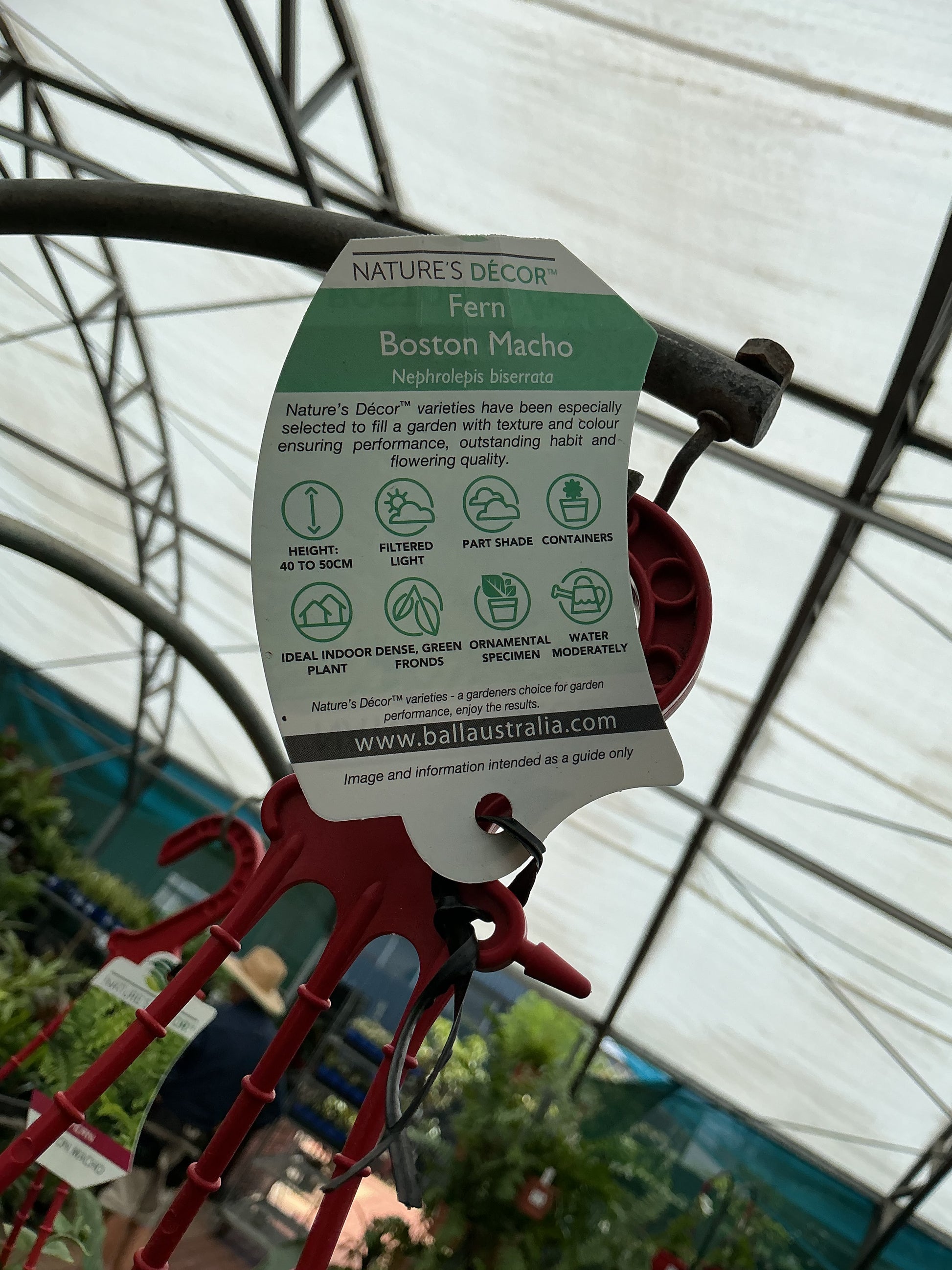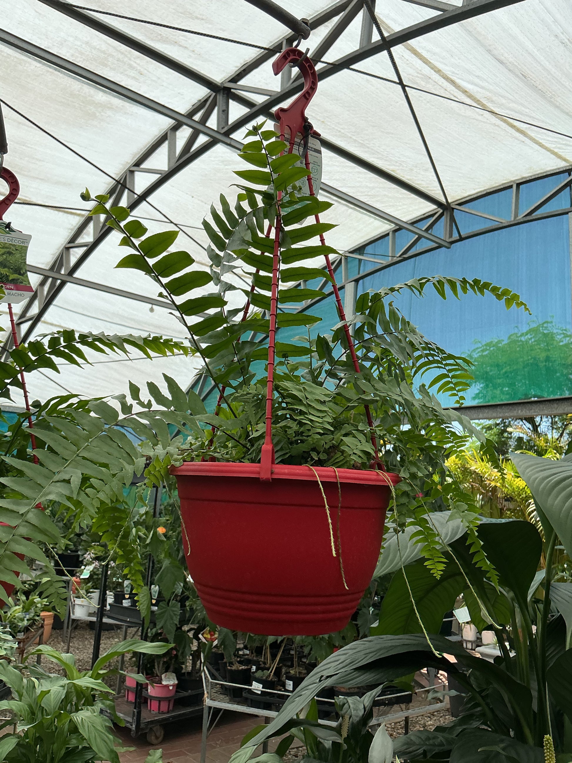 Large evergreen fern with bright green arching fronds, grows significantly larger than a standard Boston fern, reaching up to 2 meters across, and is popular as a houseplant in hanging baskets or on shelves. This fern thrives in bright, indirect light and high humidity, preferring well-draining soil and a moist environment.