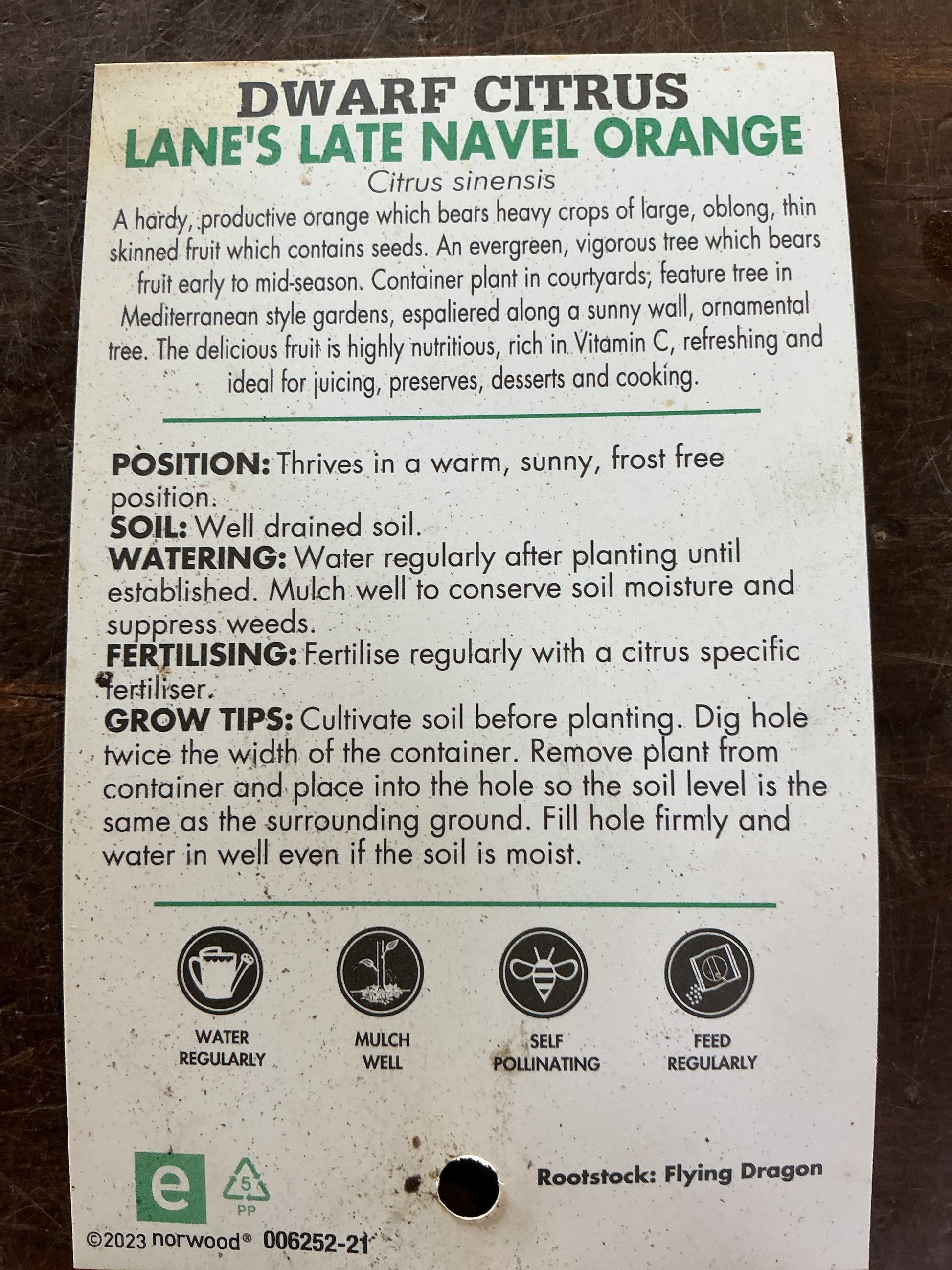 A hardy, productive orange which bears heavy crops of large, oblong, thin skinned fruit which contains seeds. An evergreen, vigorous tree which bears fruit early to mid-season. Container plant in courtyards; feature tree in Mediterranean style gardens, espaliered along a sunny wall, ornamental tree. The delicious fruit is highly nutritious, rich in Vitamin C, refreshing and ideal for juicing, preserves, desserts and cooking.