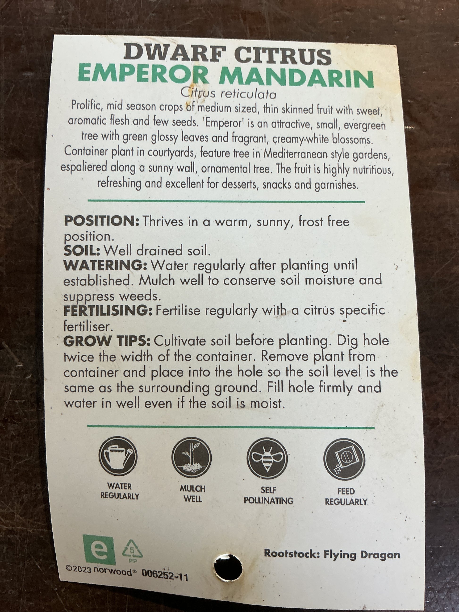 Prolific, mid season crops of medium sized, thin skinned fruit with sweet, aromatic flesh and few seeds. 'Emperor' is an attractive, small, evergreen tree with green glossy leaves and fragrant, creamy-white blossoms. Container plant in courtyards, feature tree in Mediterranean style gardens, espaliered along a sunny wall, ornamental tree. The fruit is highly nutritious, refreshing and excellent for desserts, snacks and garnishes.