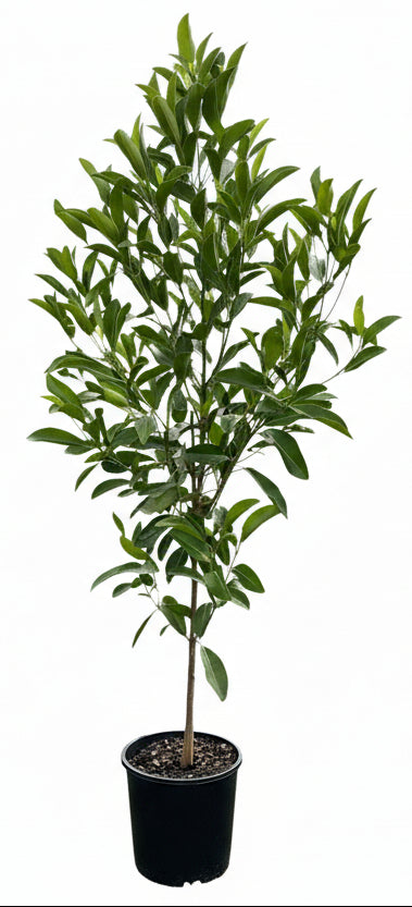 A small sized, glossy leaved, fast-growing tree that bears yellow-gold fruits. Clusters of small, white, starshaped flowers during summer and autumn attract birds, bees and butterflies. Ideal for hedges, screening or as a feature tree in coastal and native gardens. Height to 6m.